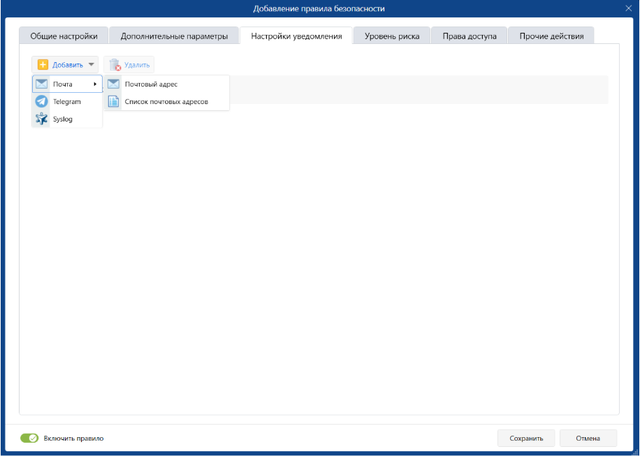 Прописываем электронную почту специалиста по инфобезопасности для получения уведомления об инциденте и оперативного реагирования на него.
